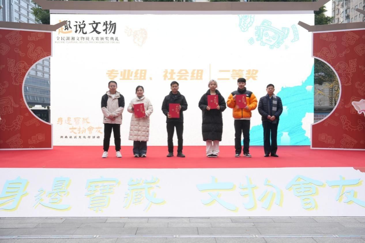学生在湖南省全民湖湘文物说大赛领奖现场