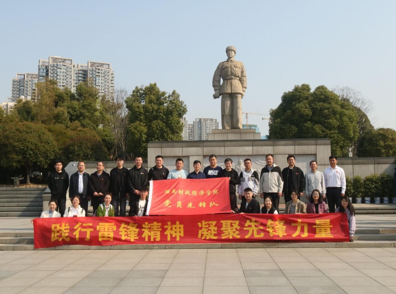 先锋队员在雷锋像前的集体合影