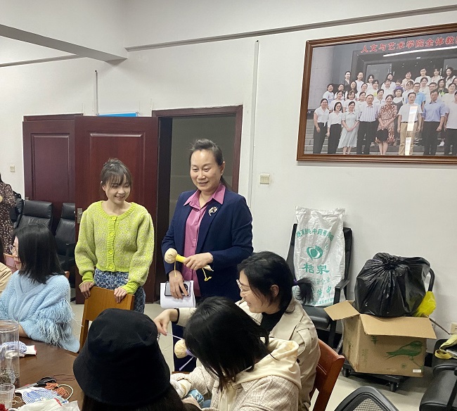 (本网讯)为丰富女教师的业余文化生活,3月14日上午,人文与艺术学院分工会组织女教师开展手工制作体验活动。校党委副书记苏玲出席活动。活动现场 林铁/摄老师们学习制作养生锤 梁曼琳/摄来自大汉国际工匠院的老...