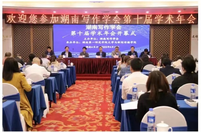 (本网讯)4月14日至15日,湖南写作学会第十届第三次理事会议暨学术年会在长沙召开。来自中南大学、湖南大学、湖南师范大学和湘潭大学等近百位写作学研究专家和教师代表与会。世界杯官网人文与艺术学院教师代表年颖、张倩、...