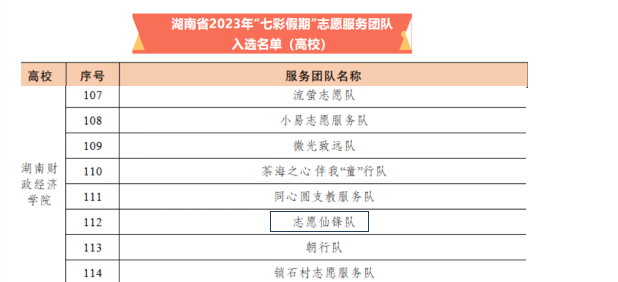 我院“志愿仙锋队”入选共青团湖南省委2023年“七彩假期”志愿服务团队
