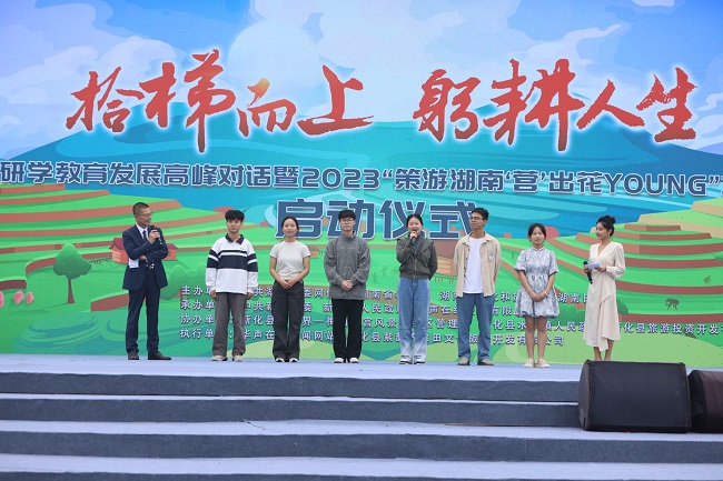 (本网讯9月26日上午,紫鹊界研学教育发展高峰会话暨2023“策游湖南‘营’出花YOUNG”文旅活动启动仪式在娄底新化紫鹊界梯田景区举行,我院学生党支部书记欧璐到场指导,旅游管理系学生李美盼作为学生代表发表战队宣言...