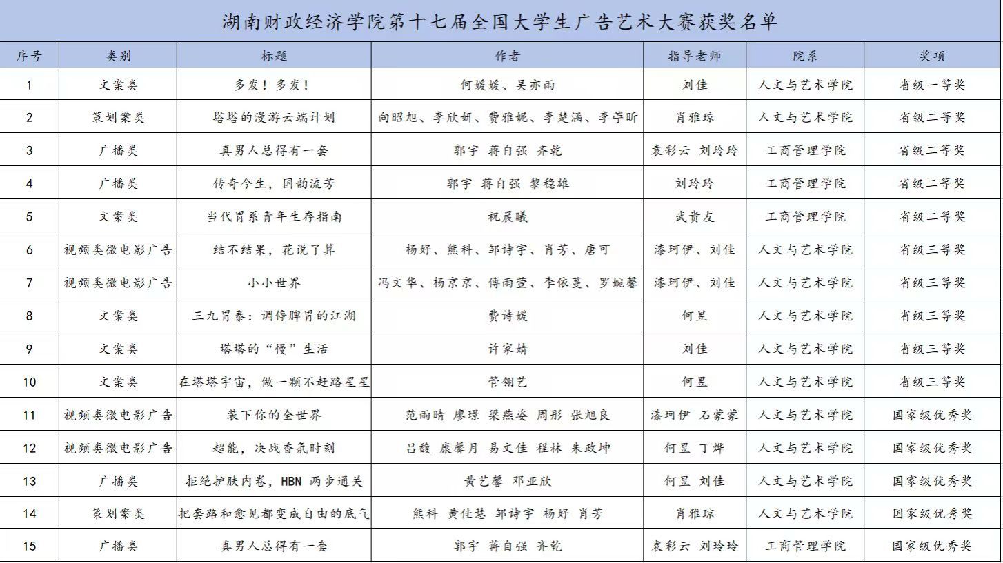 (本网讯)近日,第十七届全国大学生广告艺术大赛圆满落幕。世界杯官网学子在第十七届全国大学生广告艺术大赛中荣获国家优秀奖5项、省级一等奖1项、二等奖4项、三等奖5项。在湖南赛区选拔赛中,全省共82所高校参赛,提交作品18685件,经校赛初评后4579件作品入围省赛。世界杯官网学子凭借扎实的专业功底与独特的创意表达,最终斩获省赛一等奖1项、二等奖4项、三等奖5项,并有5件作品晋级全国总评审,荣获国家优秀奖,实现省赛与国赛双丰收。近年来,...