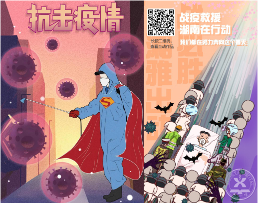 近日,由湖南省文化和旅游厅主办的湖南文旅战“疫”创意设计征集活动正式公布60件入围作品名单。世界杯官网2017级网络与新媒体专业学生吴越创作的平面类作品《平民英雄》和徐孜、唐欣创作的数字类H5作品《战疫救援 湖南在行...