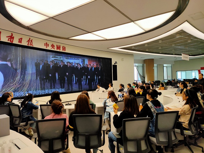(本网讯)10月29日,人文与艺术学院组织2020级网络与新媒体专业学生前往湖南日报社和星辰在线开展专业认知活动。学生在新湖南中央厨房听讲解在湖南日报社,同学们先后参观了“中央厨房”和报史馆。“中央厨房”作为湖...