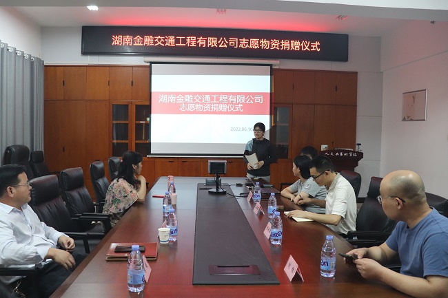 (本网讯)6月10日下午,湖南金雕交通工程有限公司向人文与艺术学院文旅志愿服务支队捐赠志愿者服装100件、帽子100顶和矿泉水20件。湖南金雕交通工程有限公司总经理谢美东、人文与艺术学院直属党支部副书记周志望出席...