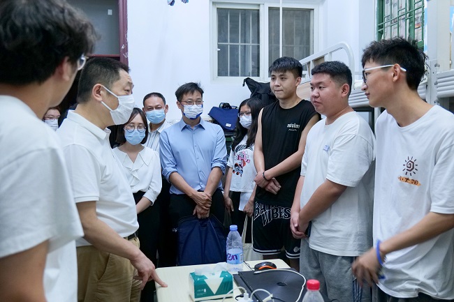 (本网讯)9月4日晚,校党委书记肖湘愚在人文与艺术学院党政领导及辅导员的陪同下,先后走访主校区9栋、11栋、3栋学生宿舍楼,了解同学们的学习生活、开学返校、学生宿舍疫情防控、宿舍卫生等情况,与同学们亲切交流...