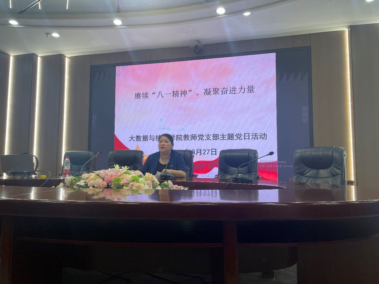 2025年8月27日上午,大数据与统计学院教师党支部在办公楼517视频会议室开展“赓续‘八一精神’、凝聚奋进力量”主题党日活动。活动由支部副书记李葛主持,全体教师党员参加。