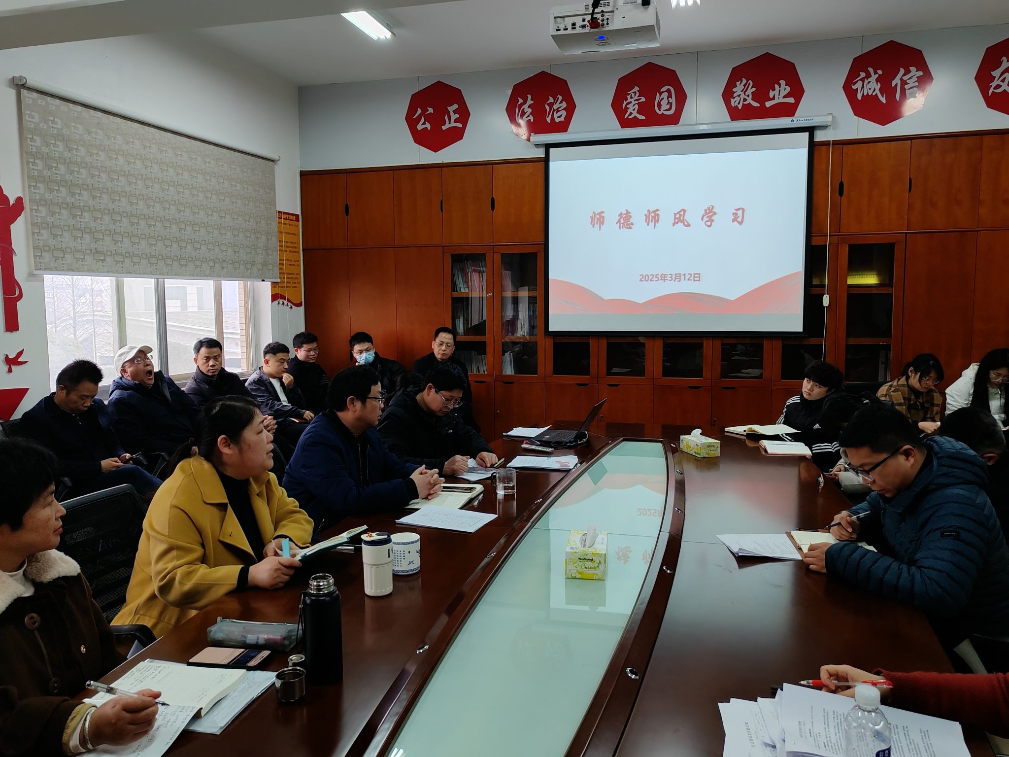 会上,学院党总支书记王萱还组织全院教职工进行了师德师风内容的学习。