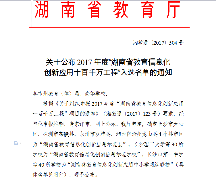 湖南省教育厅湘教通【2017】504号文件