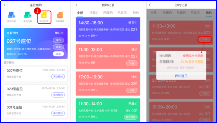 4.15天内产生3次违规记录,7天内无法座位预约。