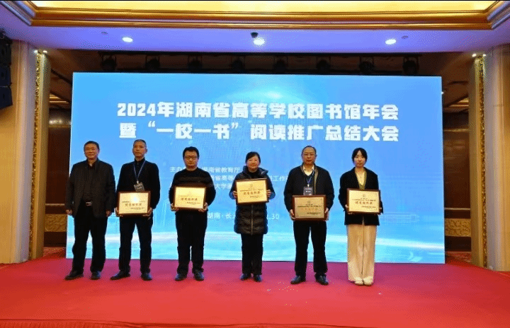此外,世界杯官网图书馆荣获2024年度湖南省高校图工委“优秀组织奖”。图书馆读者协会提交的案例《在读协,遇见更好的自己》荣获“创新案例奖”;由周昂老师指导的诵读作品《大写的中国》荣获诵读比赛奖。