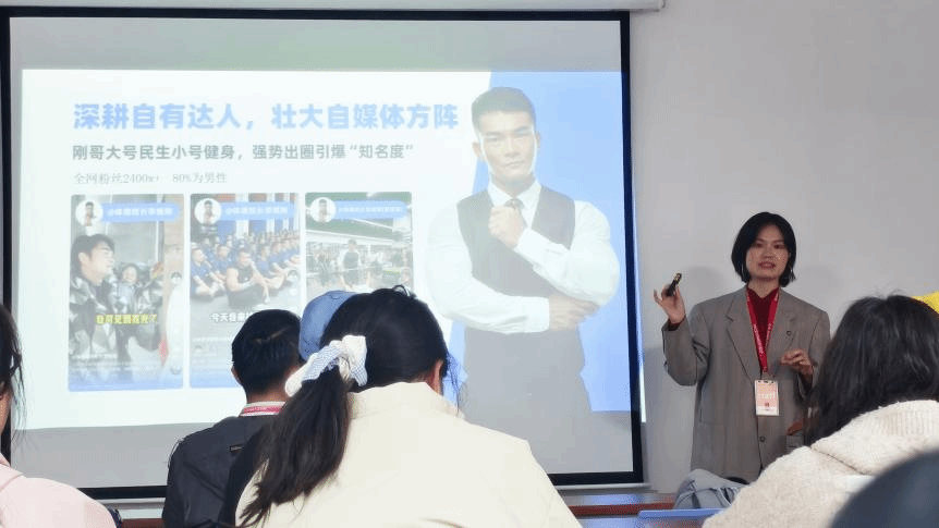 活动伊始,范则周对健萌集团一行的到来表示热烈欢迎,感谢企业为同学们搭建优质的就业平台。他介绍到学院在体育人才培养中,同学们在体育产业经营与管理、休闲体育等领域积累了扎实专业功底,同时具备拼搏奋进、吃苦耐劳的体育人特质,希望同学们珍惜机会,主动交流、大胆展示自身优势宣讲环节中,主讲人龙洁向在场师生全面阐述了健萌集团的整体情况。她介绍道,健萌作为一家体育产业集团,拥有超5.4万平方米的运营总面积,年营收达7亿元,业务覆盖40多个领域,员工人数超过1600名。她特别提到,集团旗下体德校长李维刚作为当红不让的行业头部人物,为企业注入了强大的品牌影响力。紧接着她详细介绍了健萌集团旗下的六大产业板块及其取得的成果。她还指出,健萌在校企合作方面成果丰硕,与包括中央财经大学在内的多所高校达成合作,并入选教育部供需对接就业育人项目。在技术领域,公司独立开发了拥有完全自主知识产权的智能数据管理系统,充分展现了其科技实力与创新动能。