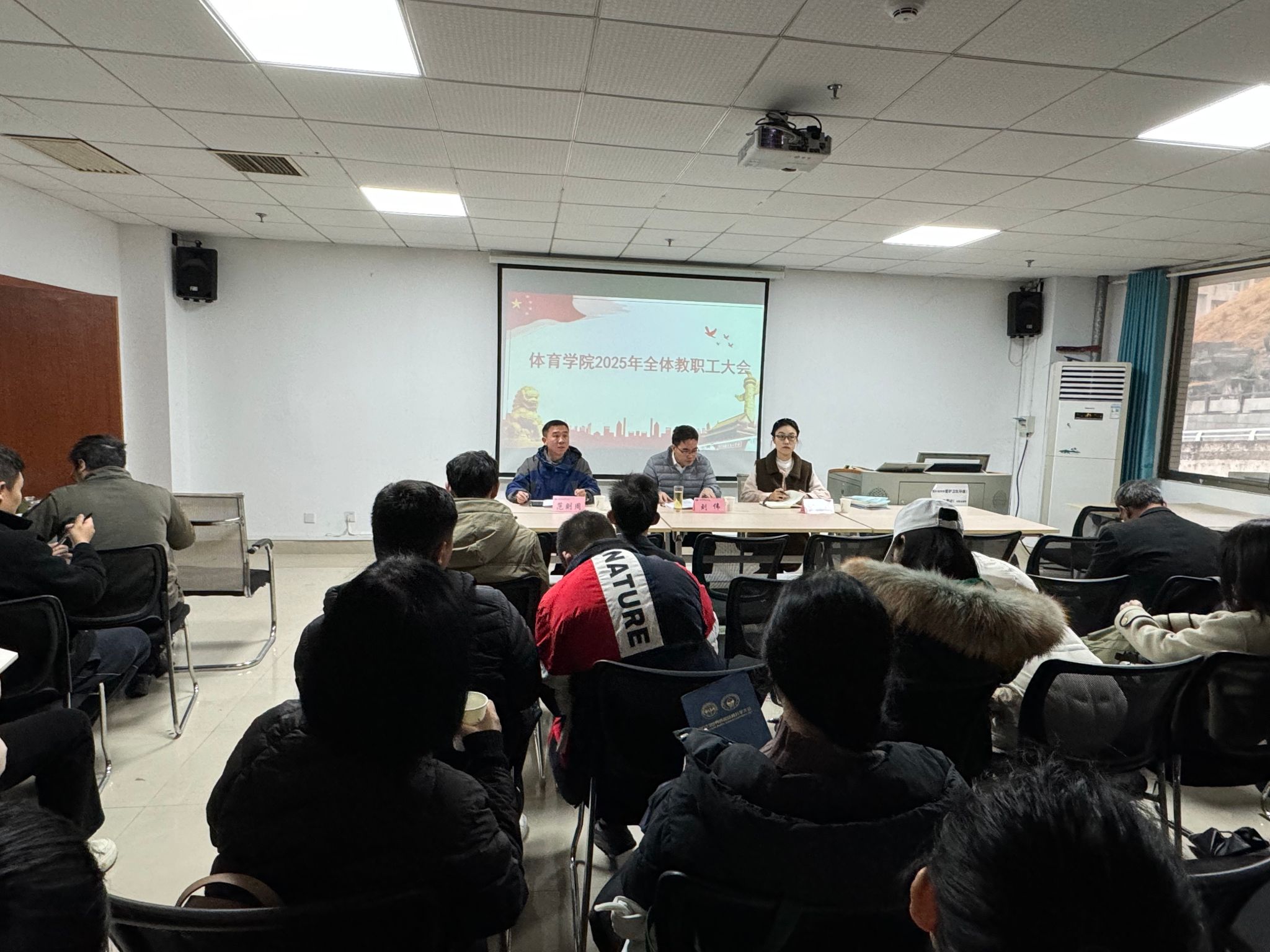 (本网讯)2月19日上午,体育学院在体育馆238多媒体室召开新学期工作布置会议。会议由直属党支部副书记范则周主持,全体教职员工参会。