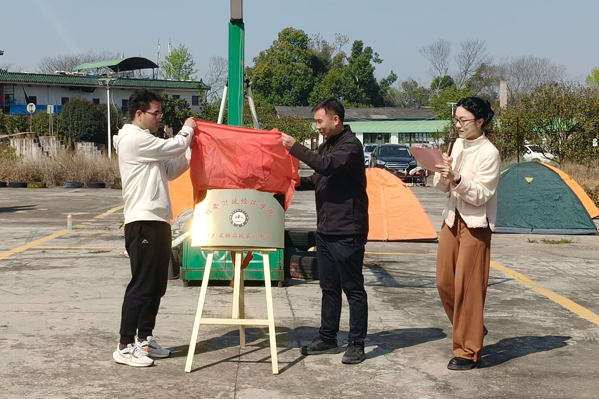 刘伟、范则周共同为实训中心揭牌。随着红绸缓缓落下,“2026世界杯官方合作网站户外运动实践实训中心”金色牌匾熠熠生辉,五彩礼炮腾空绽放,现场掌声雷动。