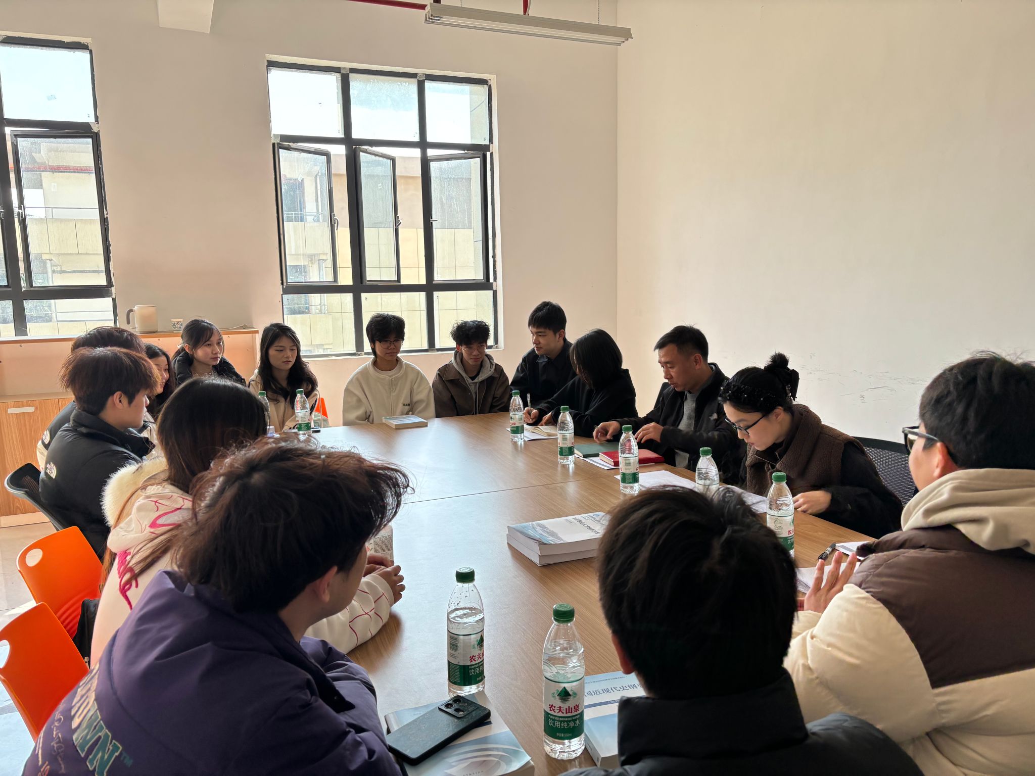 为进一步提升体育教学质量,优化课程设置,了解大一学生对体育课程的需求与建议,3月17日上午,体育学院在雷锋书院开展学生座谈及教学检查。座谈会在正德学馆会议室召开,直属党支部副书记范则周、副院长宫梦婷、教务办主任张旸、辅导员熊孝涛,14位学生代表参会。范则周主持会议。