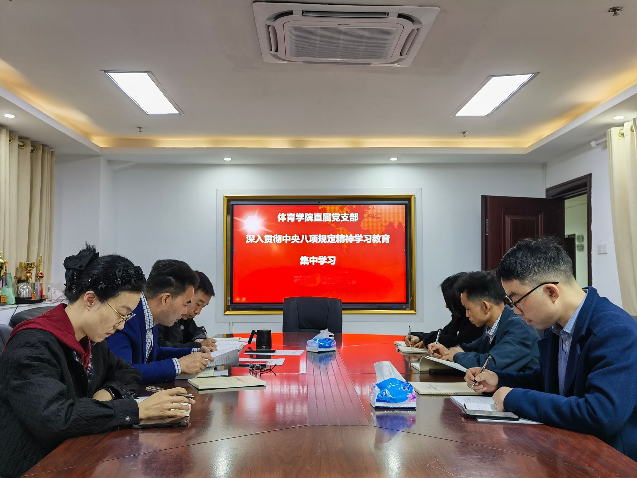 在中心发言环节,刘伟重温《中央政治局关于改进工作作风、密切联系群众的八项规定》原文,结合教师群体特点强调“杜绝铺张浪费”;范则周通过《中央党的建设工作领导小组会议精神》领学,要求支部委员“以党建品牌创建带动作风建设”;汪洋逐条分析《关于在全党开展深入贯彻中央八项规定精神学习教育的通知》,针对学院行政工作提出“简化审批流程、规范经费管理”的具体建议;黄涛则对照《省委常委会会议暨省委党的建设工作领导小组会议精神》,提出“将廉洁文化建设融入学生体育赛事组织”的创新路径;张旸系统解读《习近平关于开展深入贯彻中央八项规定精神学习教育的重要指示》,结合体育教学实践提出“将廉洁教育融入体育课程思政”。