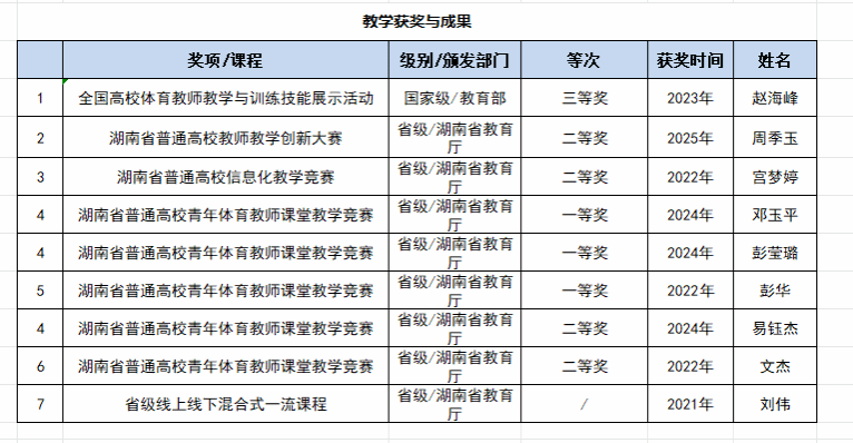 1.创新与实践并行,学院积极探索教学模式创新,近几年荣获省级以上奖励7项,这些教学成果,是学院对教育本质的深刻理解与践行,是对学生成长成才的庄重承诺。如“‘课程思政’与大学体育课程教学模式的构建与实践”,这一成果如同春风化雨,不仅传授体育技能,更在课程中融入思政元素,塑造学生健全人格。