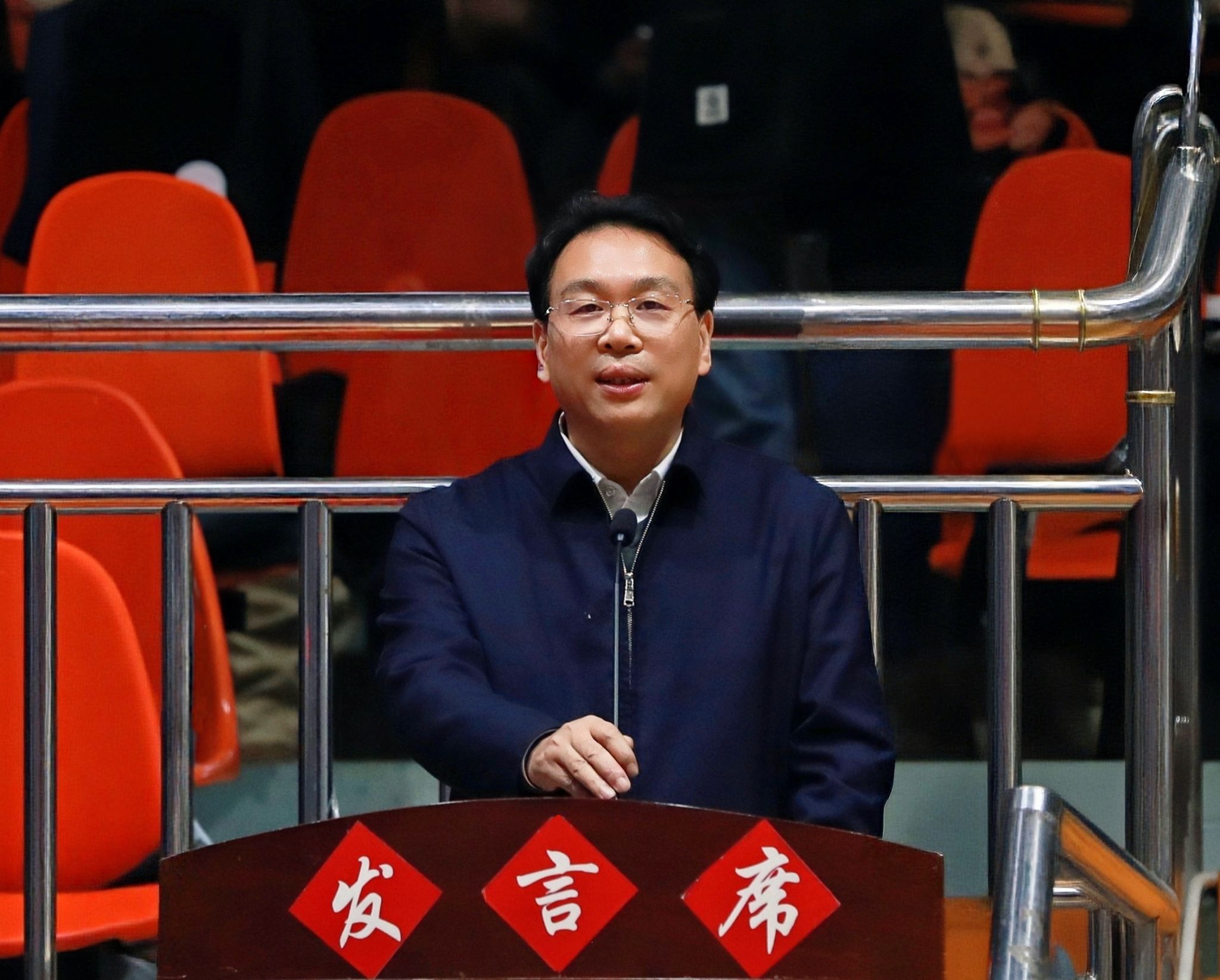 省政协原副主席、省大学生篮球协会名誉会长刘晓宣布比赛开幕(赵羽磊 摄)