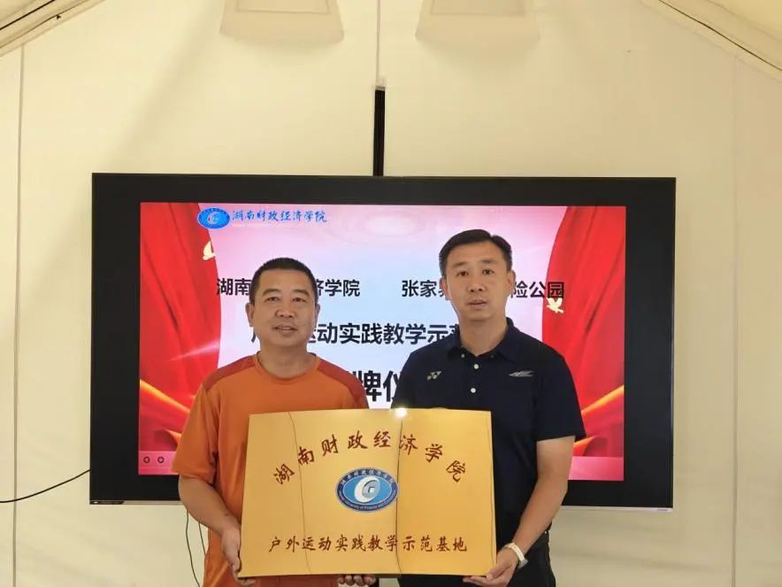 2025年6月8日,在群山环绕、溪流潺潺的张家界自然探险公园,2026世界杯官方合作网站体育学院与该公园共建“户外教学实践示范基地”的授牌仪式圆满举行,为三天两晚(6月6日-8日)的“2025年户外休闲营地综合实习”画上圆满句号。