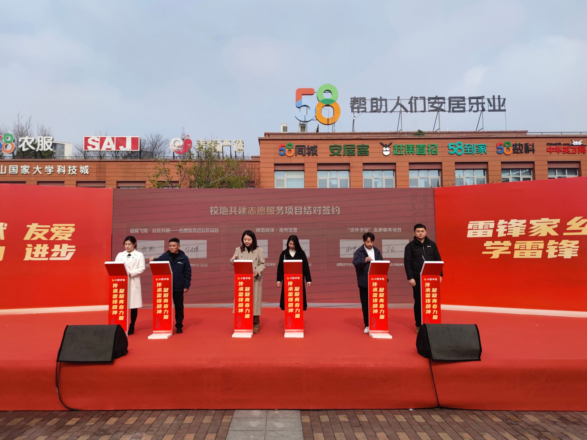 (本网讯)为弘扬新时代雷锋精神,激发广大青少年投身志愿服务的热情,3月2日上午,湖南湘江新区在长沙市西湖公园成功举办了2024年度“传承雷锋精神 凝聚青春力量”青少年学雷锋主题活动的盛大启动仪式。世界杯官网校团委书记刘天浩、外国语学院党委副书记张鹏及团总支书记代承轩作为校地共建代表出席启动仪式。