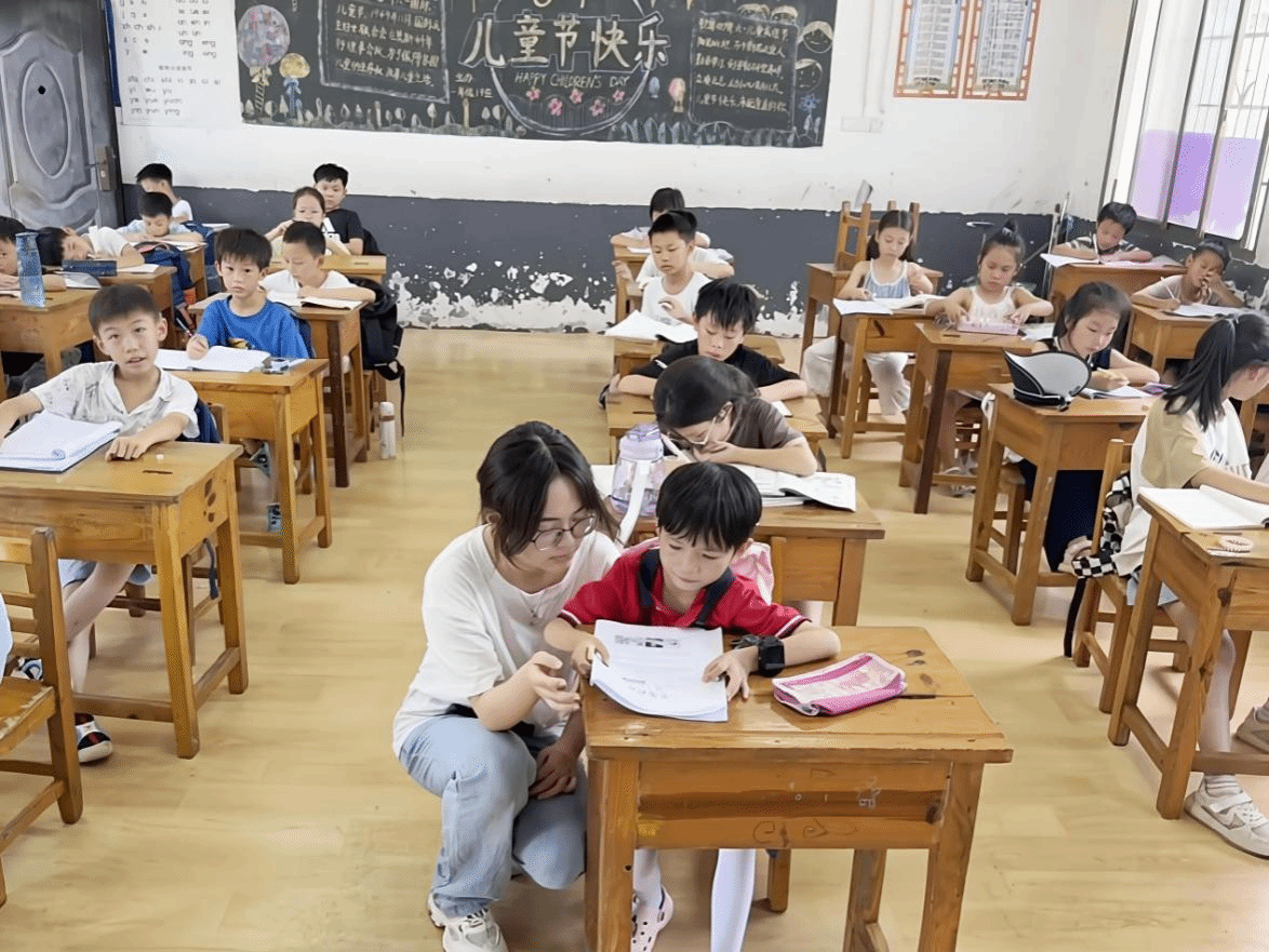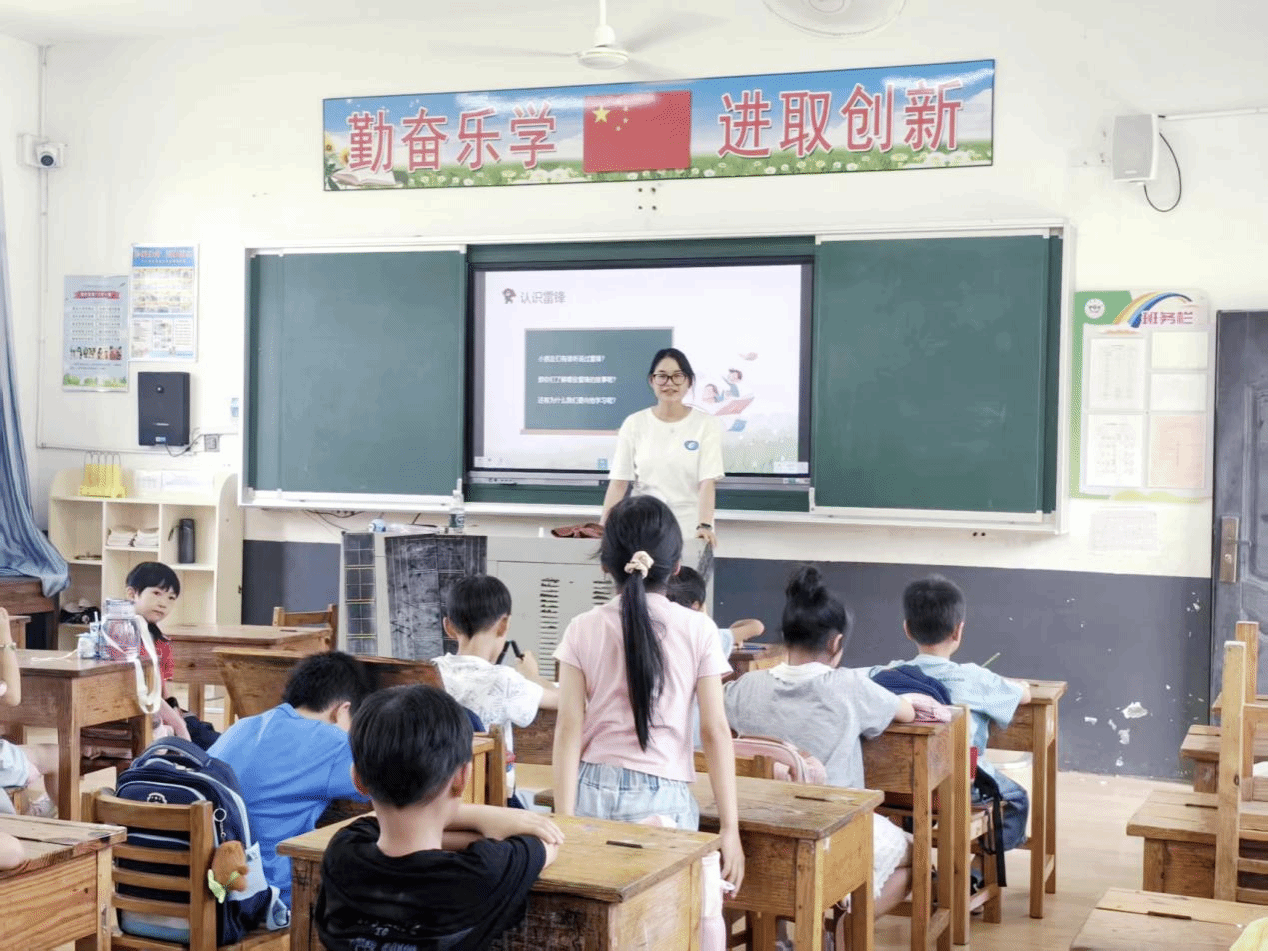 队伍抵达当日,林辉才校长带领团队实地考察校园环境,系统介绍师资配置与学生学情,助力支教队伍快速融入乡村教育场景。黎旭书记阐述村校发展历程,强调教育实践须扎根乡土实际,推动知识成果反哺乡村建设。服务队以此为指引,构建“安全护苗、文化润苗、素质强苗”三维课程体系,实现教育供给与乡村需求的精准对接。支教实践首日,趣味语文、英语、红色教育、体育、作业辅导课程依次进行,孩子们的朗朗书声和欢快笑声充满了平水桥完全小学。