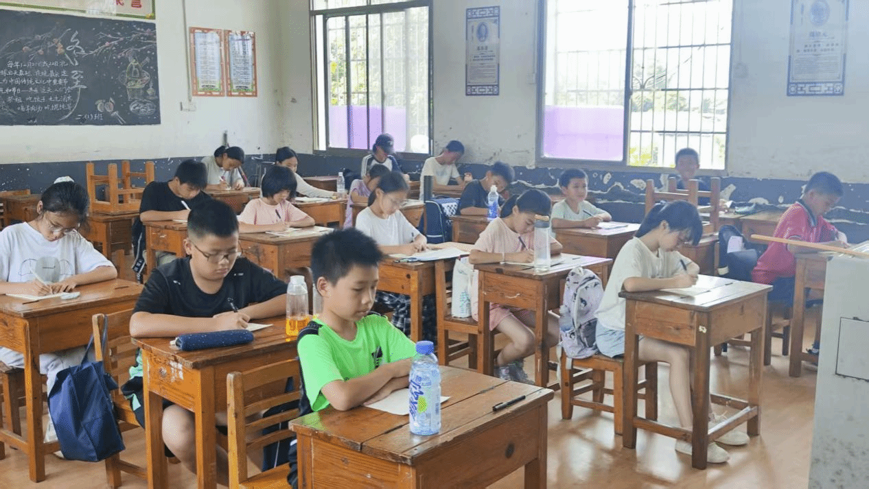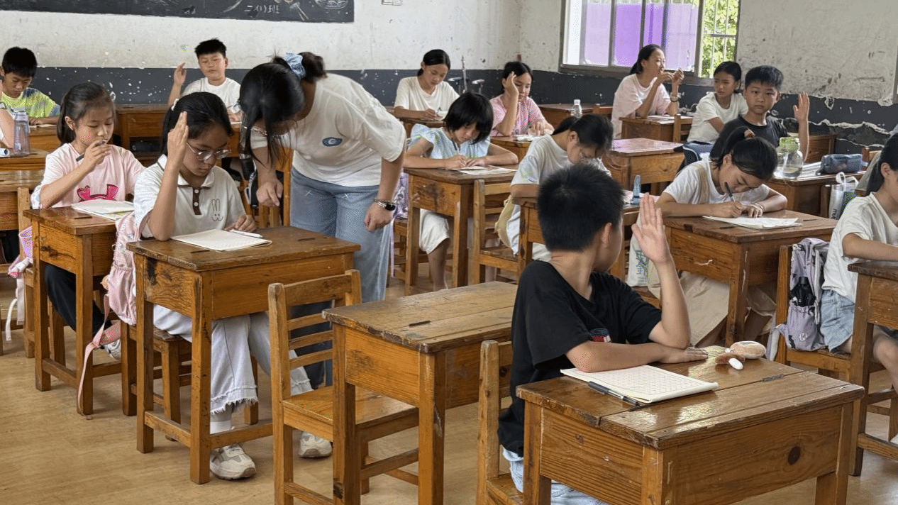 教室后墙的挂钟指向九点,阳光透过木窗户在地板上画出光斑。7月4日至7月9日,“语翼飞翔”志愿队硬笔书法启蒙课程在平水桥完全小学的教室里准时开讲。课程组组长罗雅琪与志愿者郭明希、张轩祯携手授课,在横竖撇捺的律动中,为乡村儿童架起传统文化与纯真心灵的桥梁。