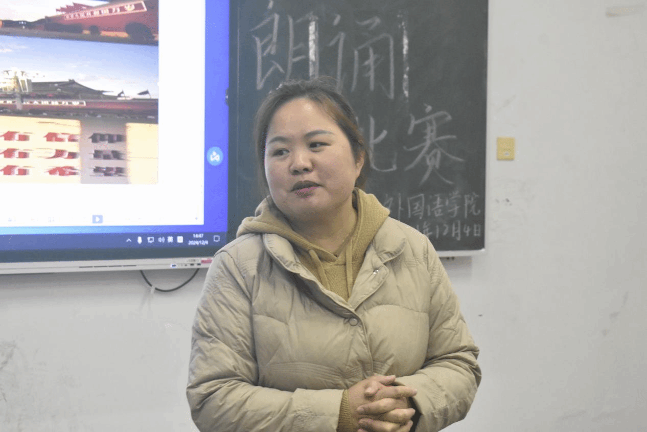 为了深入推进思想道德建设,弘扬爱国主义精神,12月4日下午14点,外国语学院于二教2107教室举办了“诵读爱国篇章,共筑祖国梦想”朗诵比赛初赛。本次比赛由外国语学院辅导员谭霞、团总支学生副书记颜晶、学生会文体部部长骆晶担任评委。