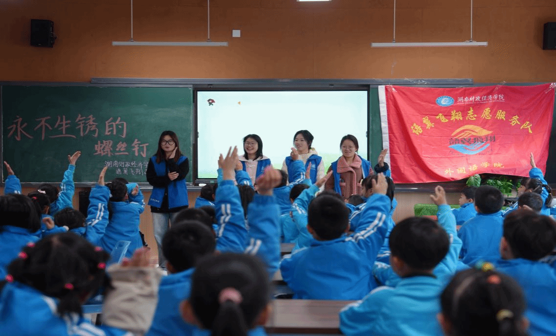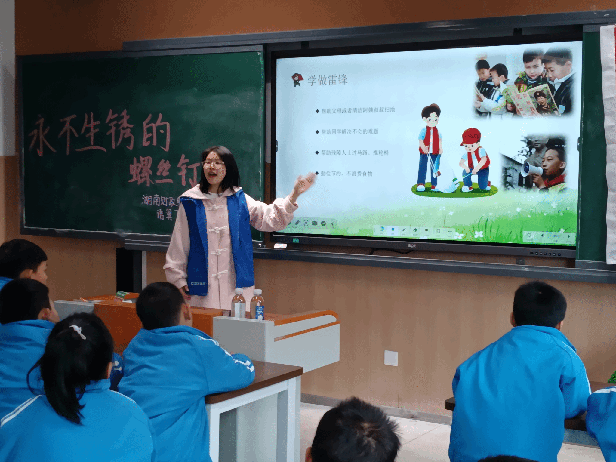 为大力弘扬雷锋精神,推动志愿服务与青少年德育教育深度融合,3月31日上午,2026世界杯官方合作网站外国语学院“语翼飞翔”志愿服务队四名志愿者走进岳麓区枫林一小,以“故事启智+趣味互动”形式开展雷锋精神主题宣讲活动。