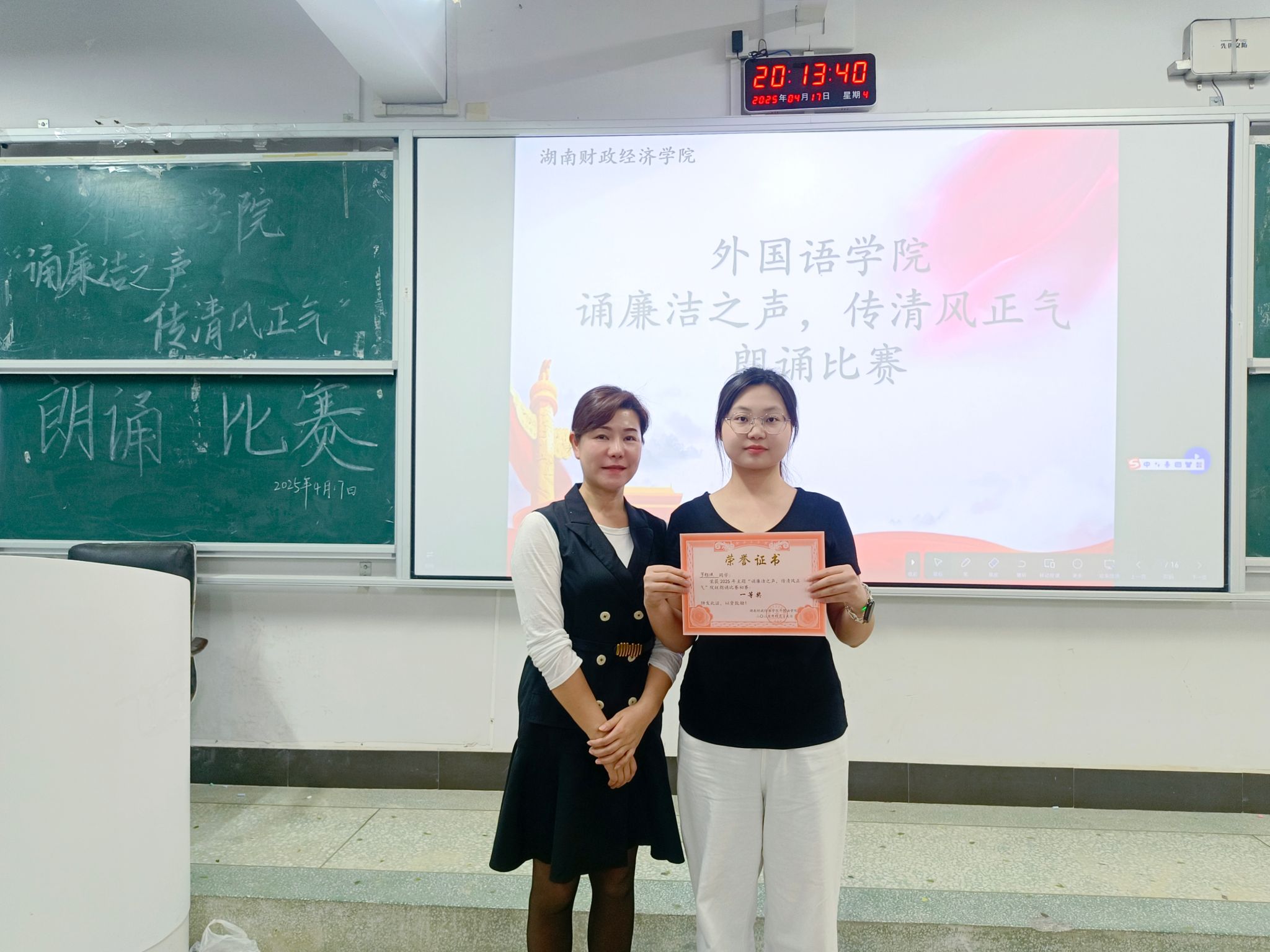 此次廉洁主题朗诵比赛的成功举办,是“智汇财经,AI赋能”学术节活动深化主题教育、创新廉政宣传的一次重要实践,同时让廉洁理念更鲜活地贴近大众,有效引导青年群体树立正确的价值观。未来,学院的系列活动将继续探索技术赋能与文化传播的结合点,为营造风清气正的社会环境贡献智慧与力量。