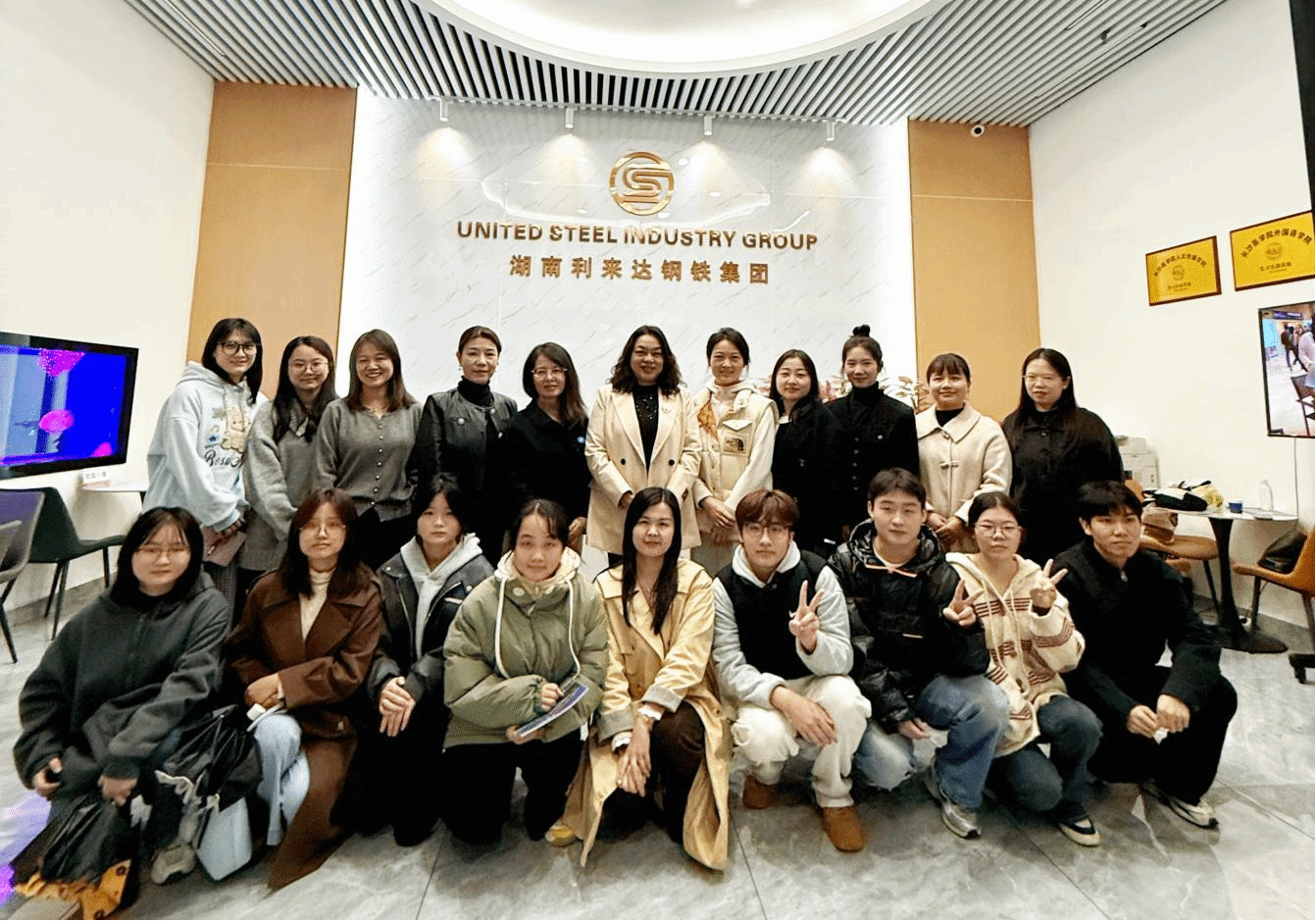 (本网讯)10月21日下午,外国语学院党委书记凌飞、副书记张鹏、副院长汪小英、学工办主任肖叶枝、毕业班辅导员杨舒淇一行,带领十余名2026届毕业生同学代表,赴利来达钢铁有限公司、华成钢铁、华联钢铁以及锐博钢铁有限公司开展走访交流与座谈,深入推进“访企拓岗”专项行动,积极拓展毕业生就业渠道。