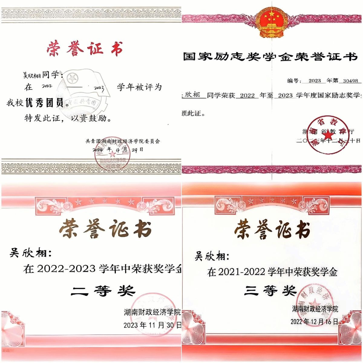 5.荣誉奖项:2022 - 2023年国家励志奖学金