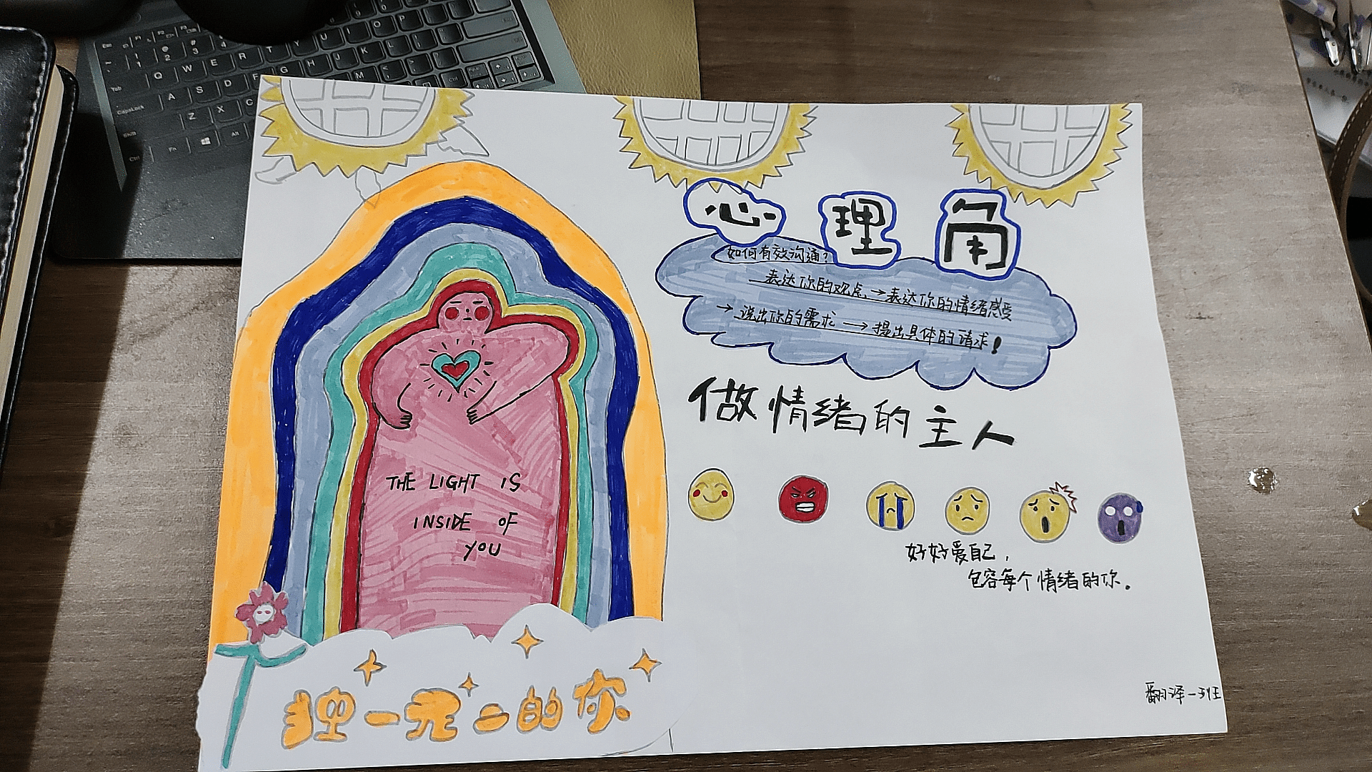 以劳健心,践行志愿服务精神与劳动意识。世界杯官网心理中心培育了一支朋辈队伍,接电话,做预约,朋辈疏导,耐心、温心、爱心、暖心为来访者提供志愿服务;并于暑期成立一支三下乡队伍,关爱留守儿童的心理健康;举办了“打开五感、感知美好”寻宝活动以及绘画团体手抄报,采用原创手工制作的形式,根据主题,发挥想象,自由设计,自主完成,让学生更好地展示个性和表达自我,在动手过程中释放自我,以物寄情,享受快乐。