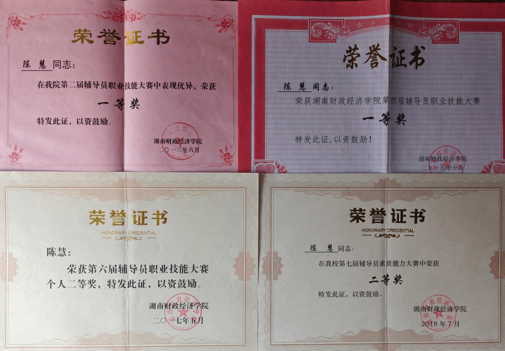 (一)以赛促学,铸牢职业根基。她主动参与业务培训与技能竞赛,10余年间累计13次参加辅导员素质能力大赛(前身为辅导员职业技能大赛)均获奖,其中省级优胜奖1次,校级一等奖4次、二等奖 4次、三等奖1次、优胜奖3次,保持“参赛就获奖”的优良纪录。