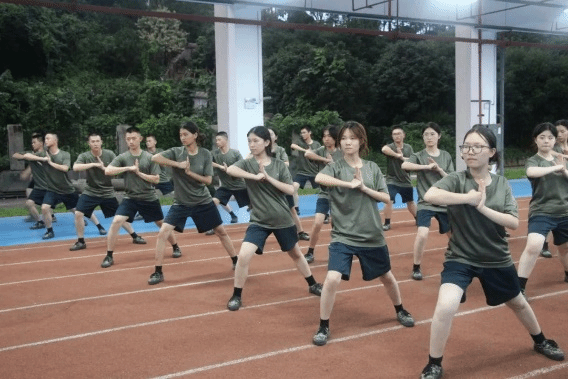 清晨6:30,队列集结完毕,整齐划一,尽显飒爽英姿。在一声声“一二一,一二一……”的口号声中,体能训练随即展开。