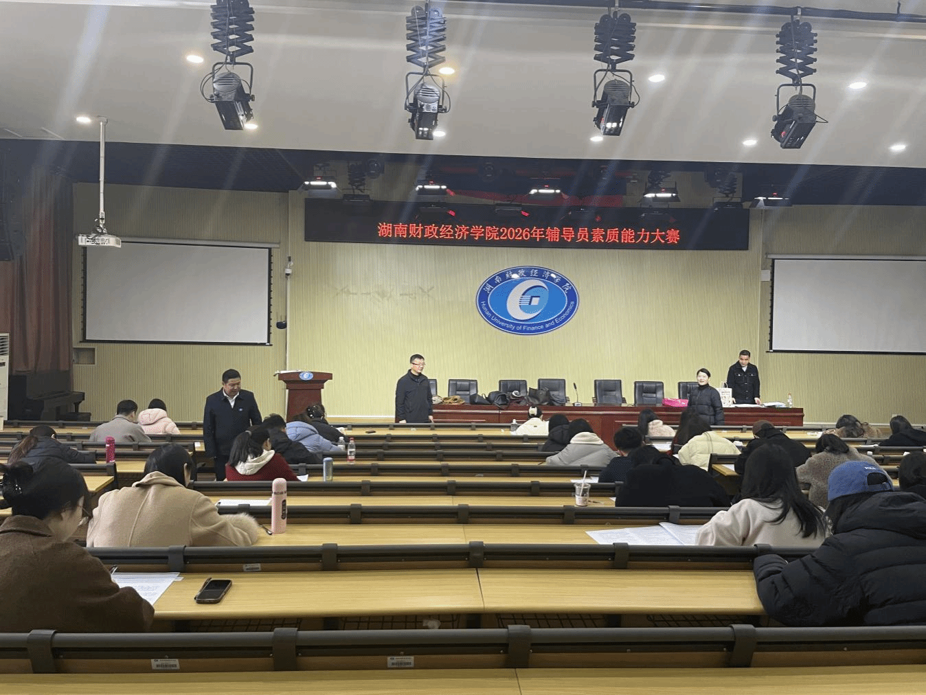 (本网讯)为深入学习贯彻习近平新时代中国特色社会主义思想,坚定不移落实立德树人根本任务,进一步提升辅导员队伍的专业化、职业化水平,3月10日至12日,世界杯官网在二教学楼学术报告厅举办了2026年辅导员素质能力大赛,全校15个二级学院的60名辅导员参赛。学生工作部部长欧阳海峰、副部长李六华全程指导,各二级学院副书记、学工办主任及其他辅导员全程观摩。