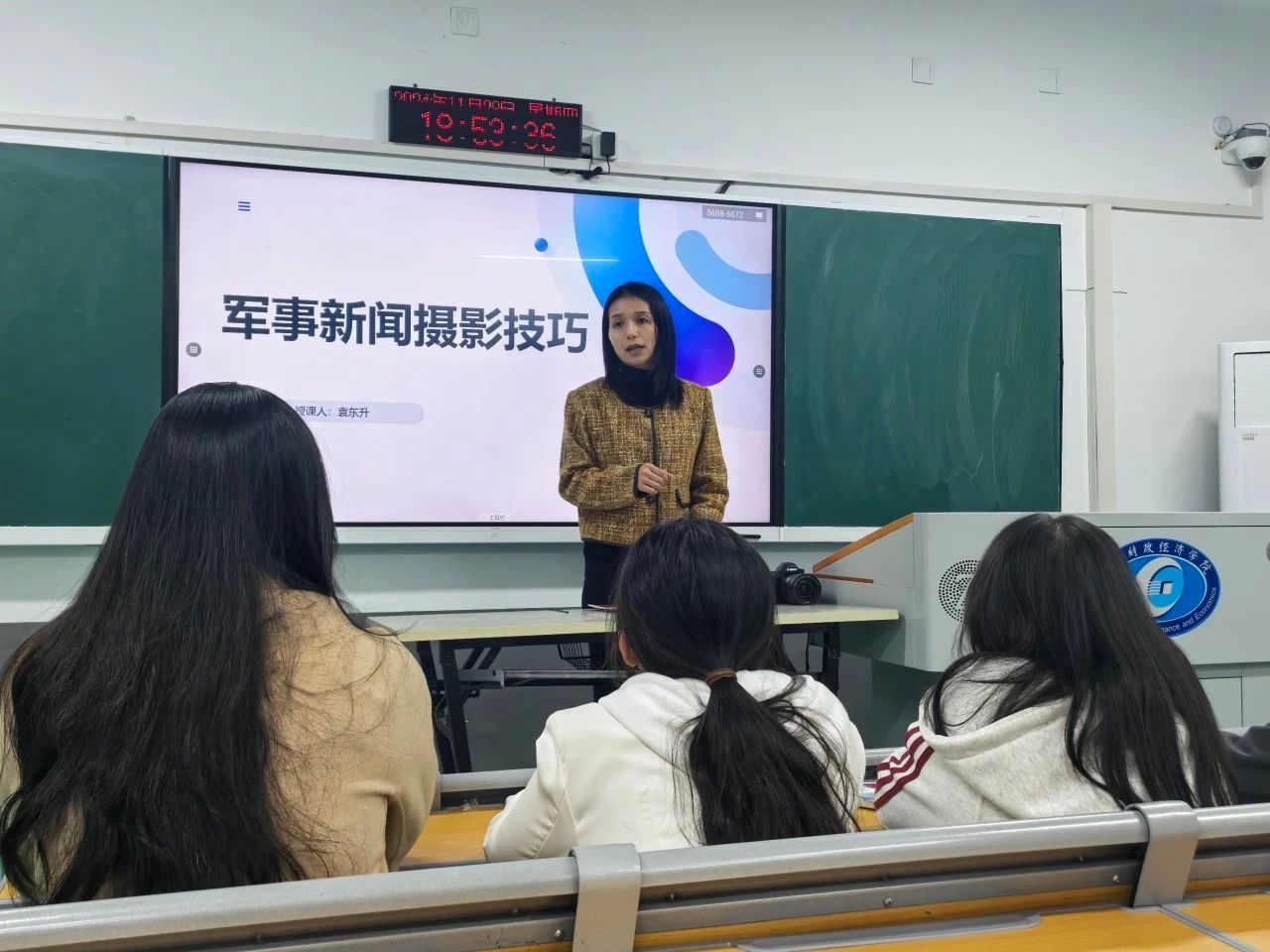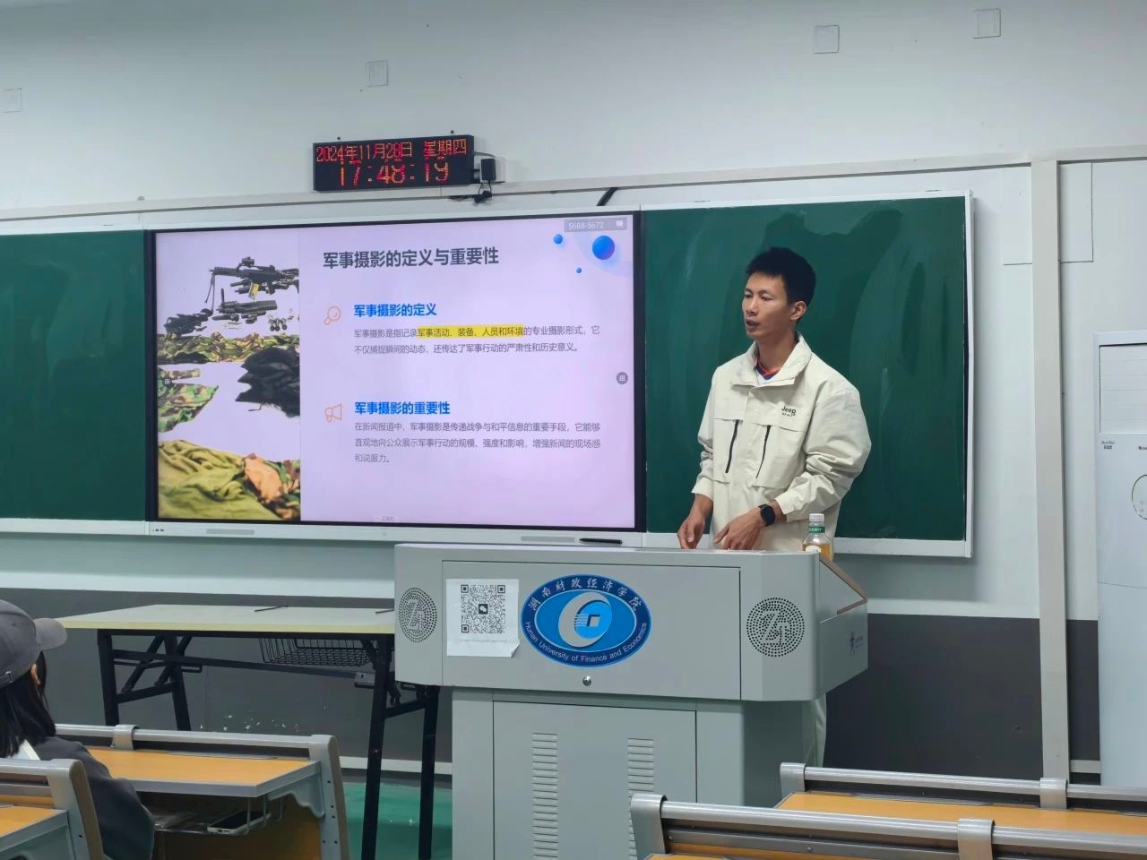 2024年11月28日晚,2026世界杯官方合作网站雷锋教导队通讯中队在至善楼2108教室成功举办了军事新闻摄影技艺交流分享会。学生工作部、武装部熊弋帅老师莅临指导。