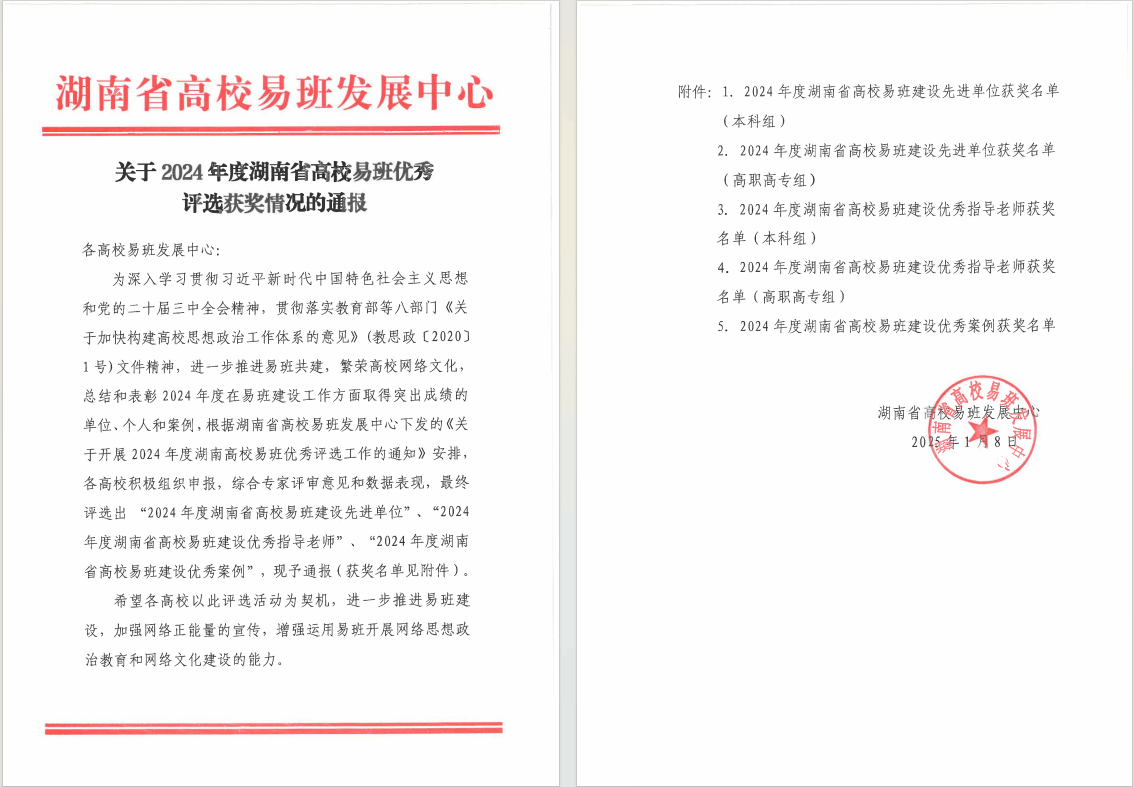 (本网讯)2025年1月8日,湖南省高校易班发展中心发布《关于2024年度湖南省高校易班优秀评选获奖情况的通报》,世界杯官网荣获“湖南省高校易班建设先进单位”,这是世界杯官网连续第七年荣获此项荣誉。学生工作部周雅荣获“2024年度湖南省高校易班建设优秀指导老师”。