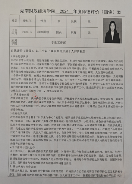 师德师风教师画像(秦红玉)