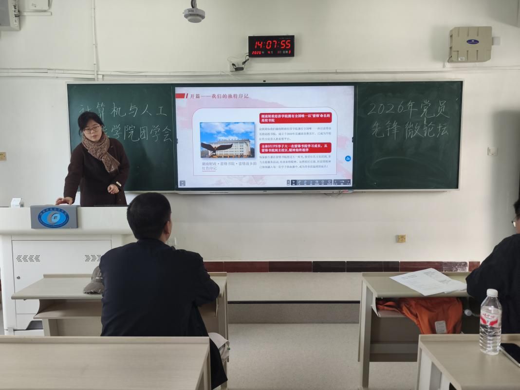 在专题微党课中,李雨希围绕2026年全国两会精神,重点就会议基本情况、习近平总书记重要讲话精神、政府工作报告核心内容以及“十五五”规划纲要等进行了解读。他还结合“十五五”规划纲要中“支持青年发展”等章节,引导学生骨干深刻认识国家战略对青年科技人才的迫切需求,思考如何将计算机科学与技术、人工智能等专业学习,同发展新质生产力、推动关键核心技术攻关等时代命题紧密结合,从而科学规划个人成长路径。