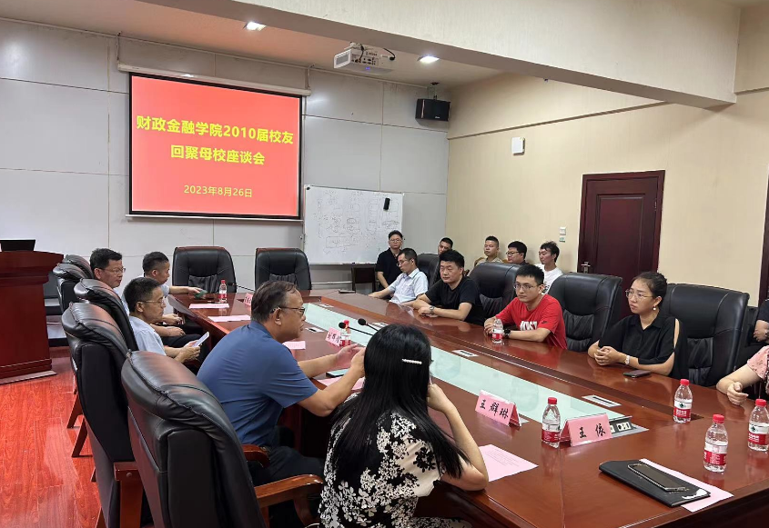 (本网讯)8月26日,30余名2010届财政学、金融学专业校友返校座谈,回忆往昔青葱岁月。财政金融学院院长刘辉煌、党委书记肖燕飞,党政办主任陆初卿,继续教育学院院长李涛及相关教师代表出席座谈会。