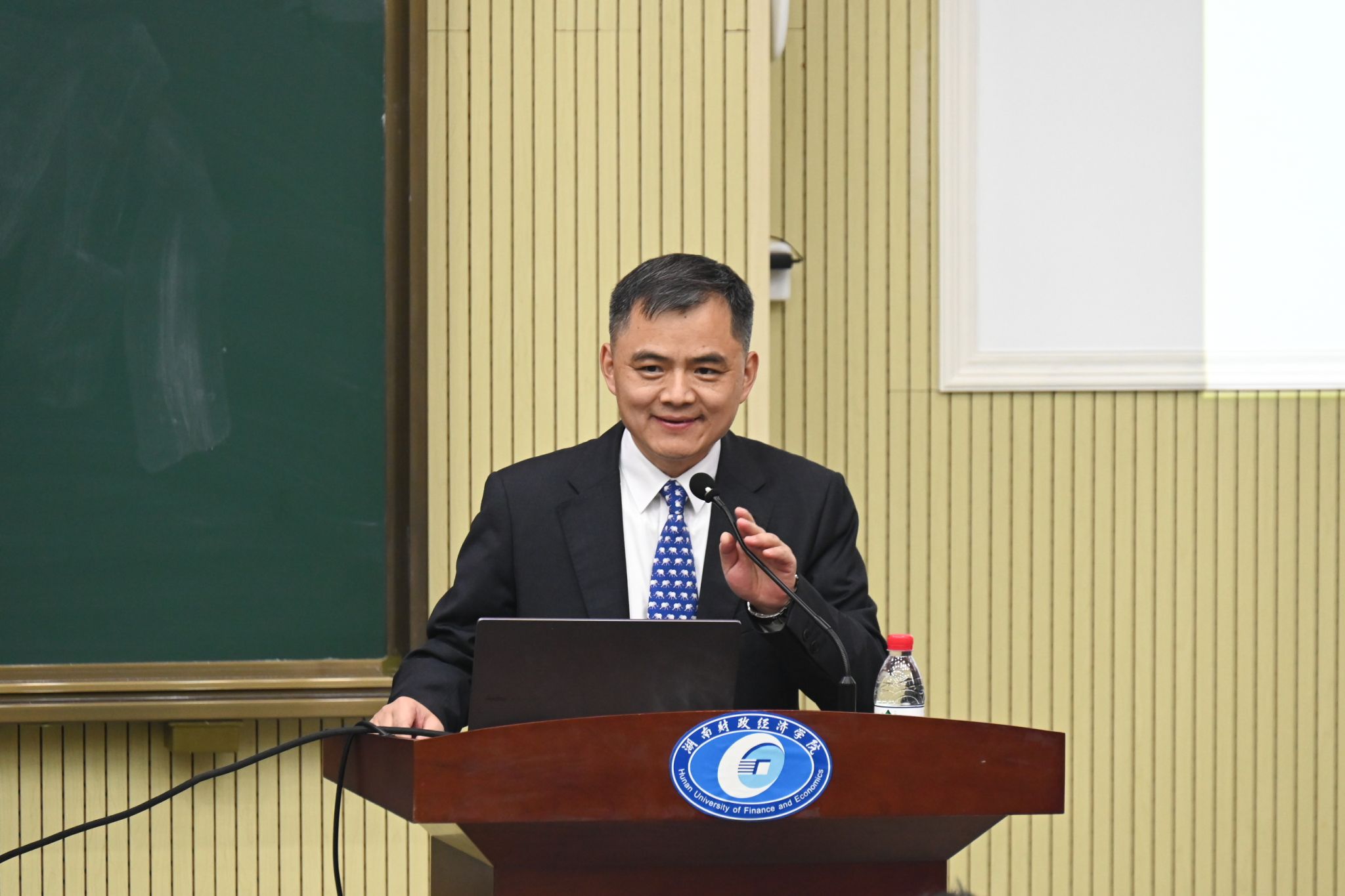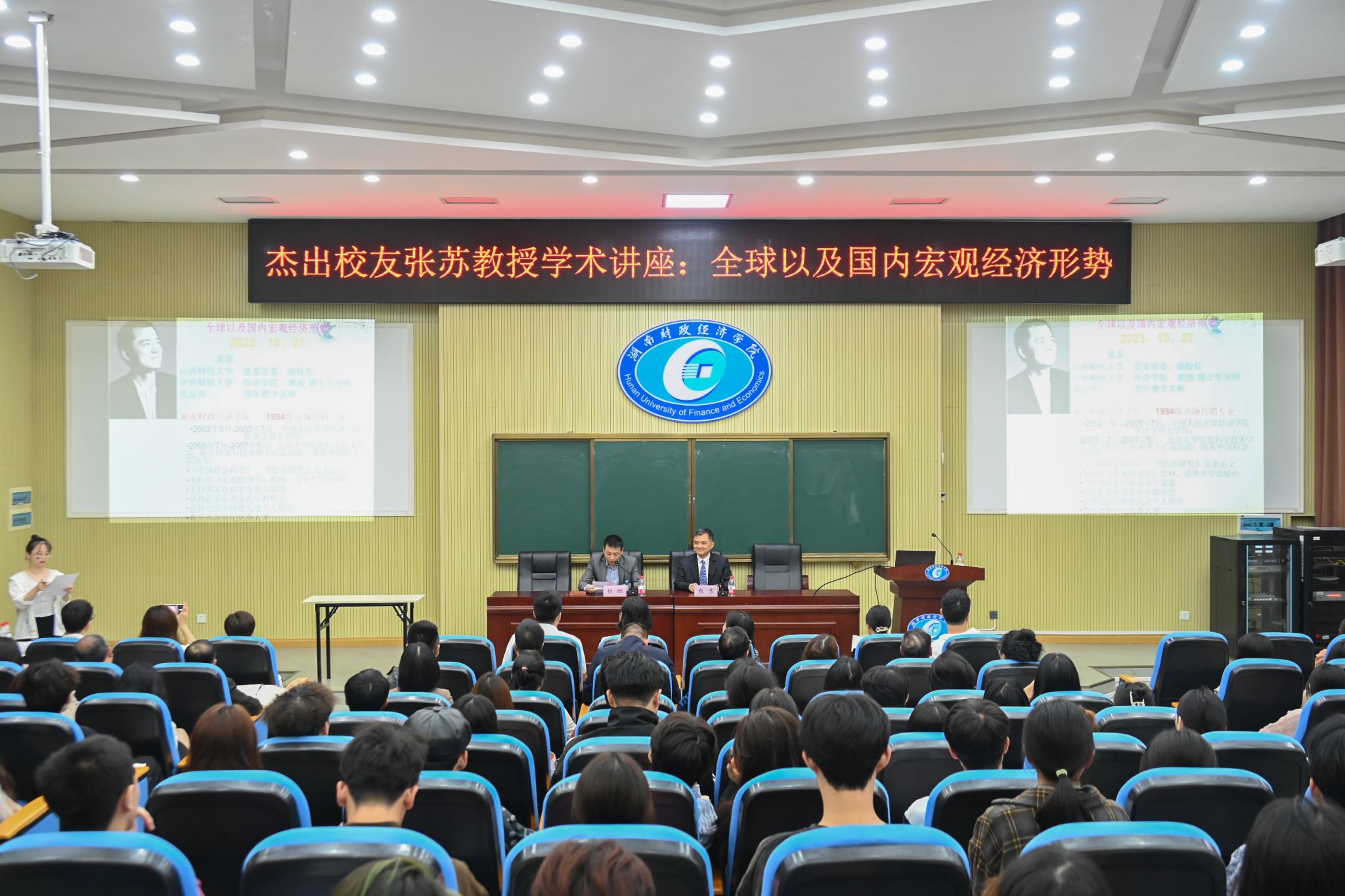 (本网讯)10月27日下午,应工商管理学院邀请,世界杯官网校友、山西财经大学副校长张苏返校作题为“全球以及国内宏观经济形势”的学术报告。讲座由工商管理学院院长杨鹏主持,人事处主要负责人、工商管理学院校友及师生代表参加。
