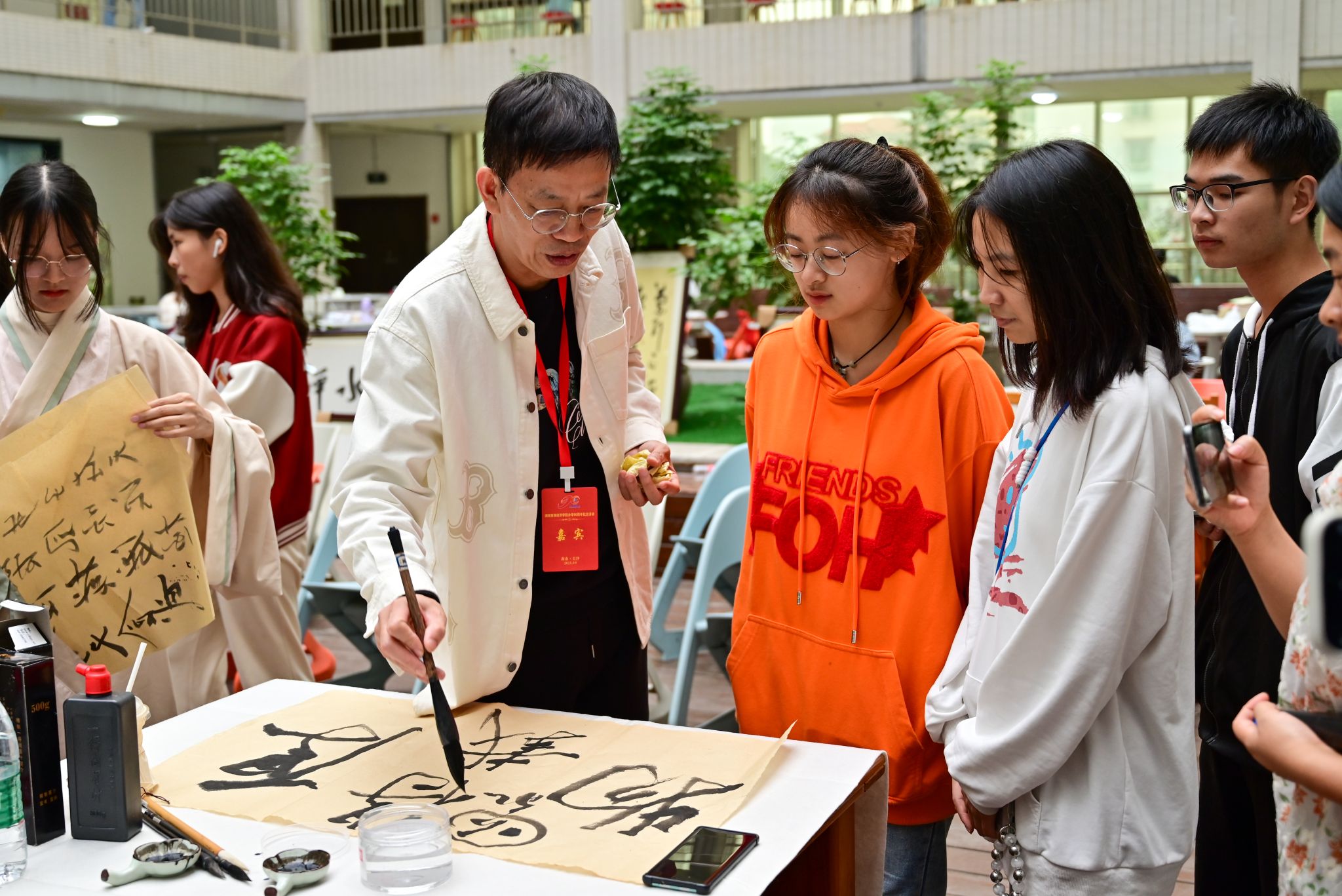 活动中,世界杯官网采薇汉服社衣袂飘扬、古意盎然的展示表演,将一众来宾带入活色生香的古风世界;书画界各名家挥毫泼墨、妙笔生花的现场题书作画,令观者意兴盎然、沉醉其间。来宾校友环步其间,或观赏书画,畅谈所思所想;或交流叙旧,回忆青春岁月。往来学生,于翰墨飘香中领略传统文化魅力,在请教名家名师中体悟前辈校友风采。