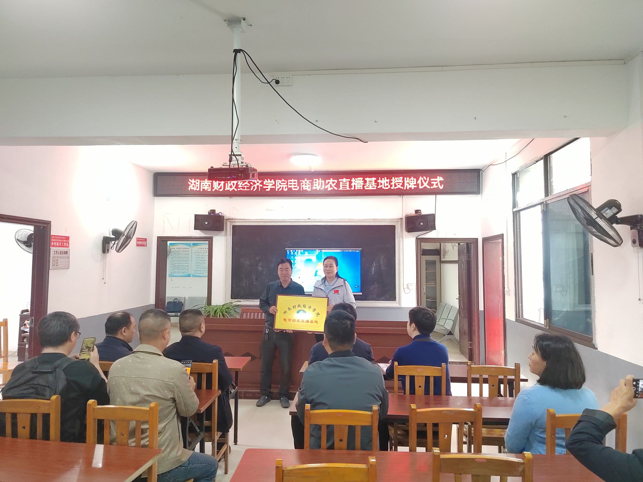 (本网讯)近日,学校电商助农直播基地授牌仪式在娄底市双峰县杏子铺镇江口村会议室举行。校党委副书记苏玲、江口村村支两委、学校乡村振兴工作队及村民代表等参加授牌仪式。