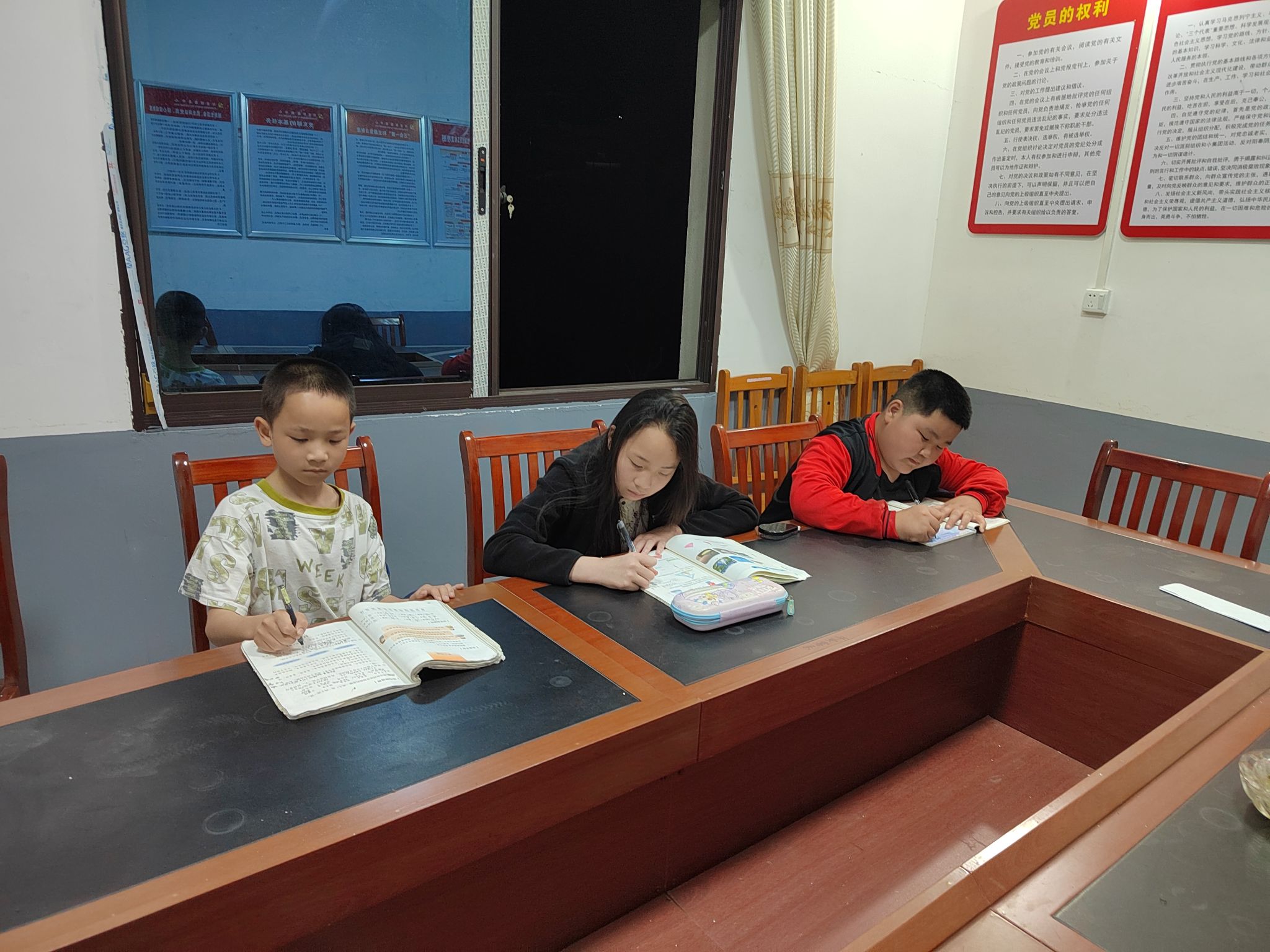 驻村教师夜间辅导江口村大塘小学小学生(罗华希摄)