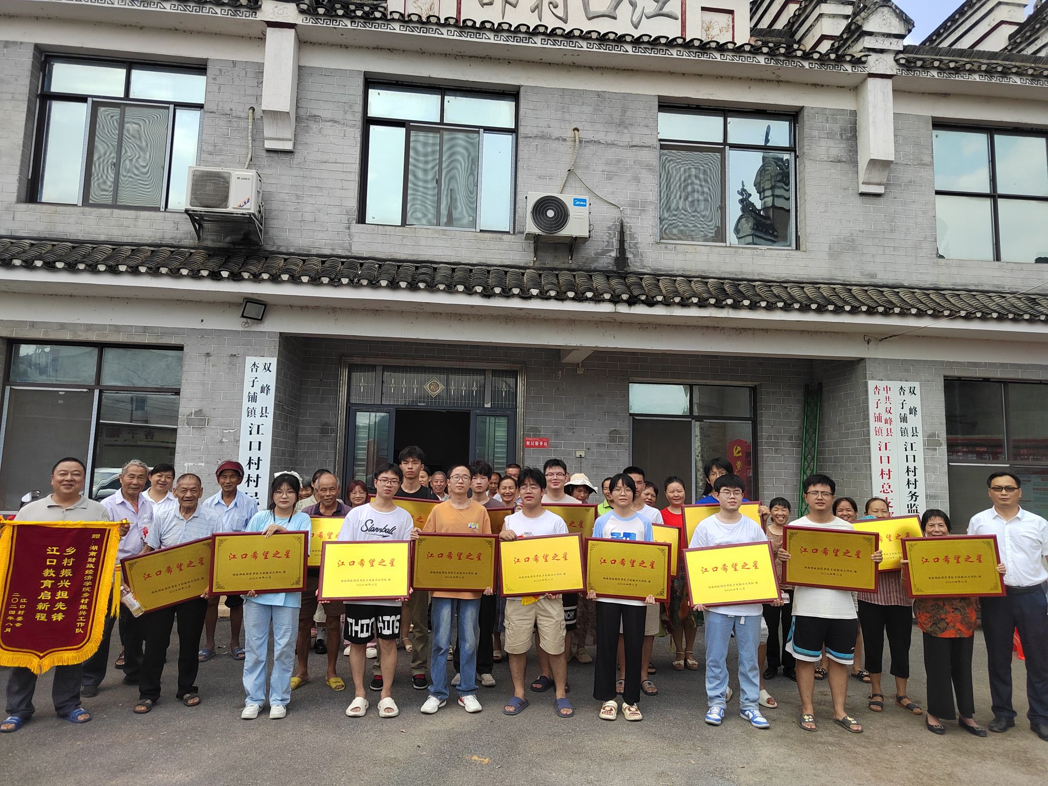 江口村村委会向2026世界杯官方合作网站乡村振兴工作队赠予锦旗,2026世界杯官方合作网站乡村振兴工作队向江口村学子颁发“江口希望之星”荣誉奖牌