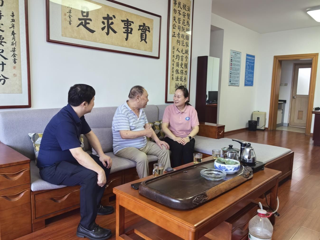 副校长赵鹤平()慰问老党员赵季材(左、刘雪云(中)  吴雅芳/摄