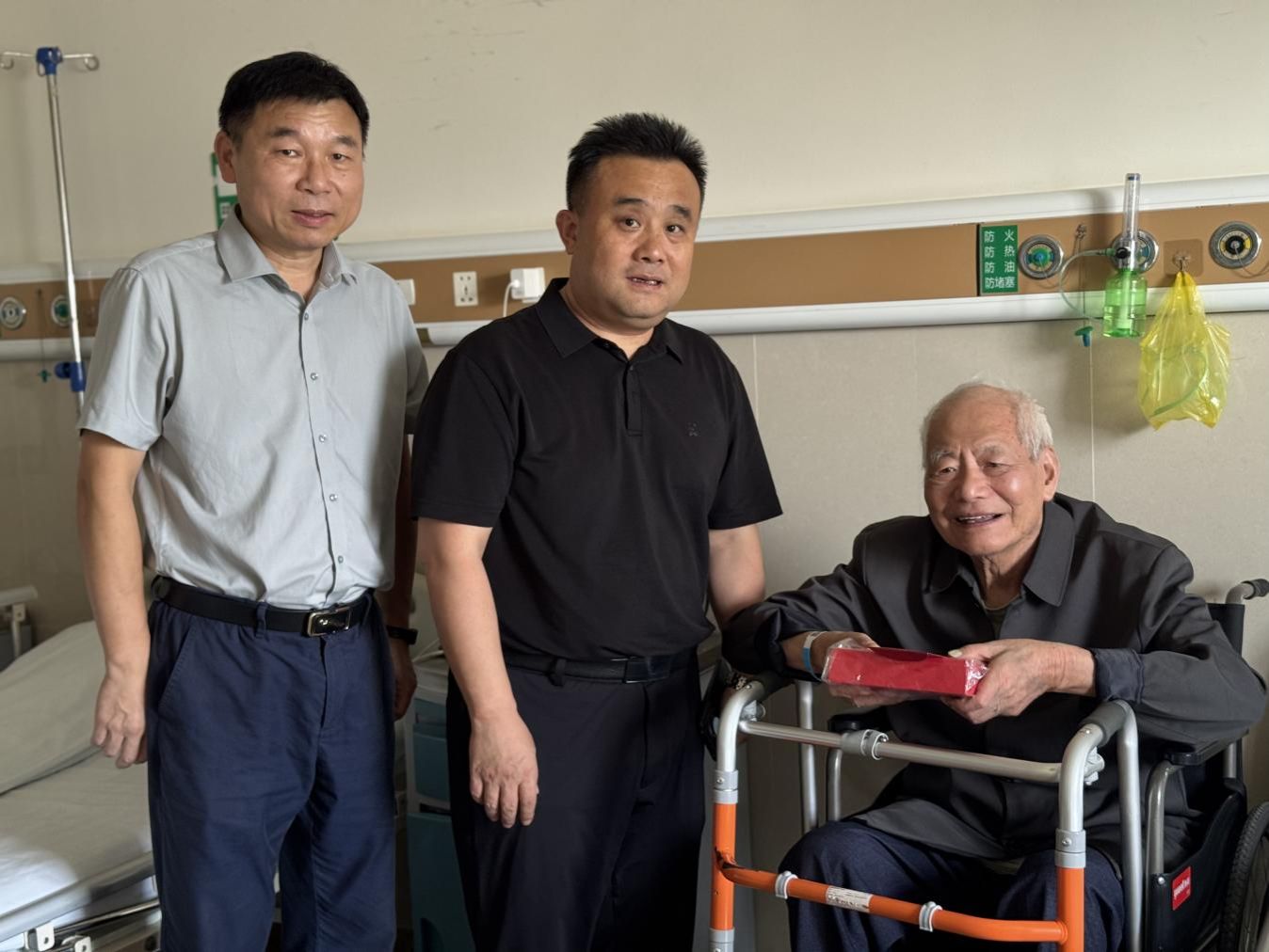 校党委委员、宣传统战部部长文炳勋()慰问党员吴耀武(中)  肖萌/摄