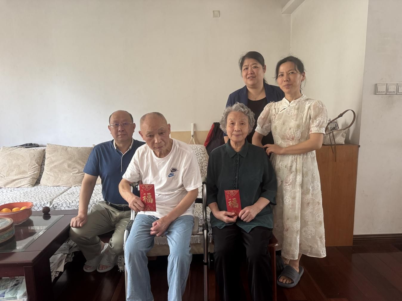 校党委书记易棉阳右二)慰问老党员颜学根左二、邓梅仙(右一)  何妍/摄